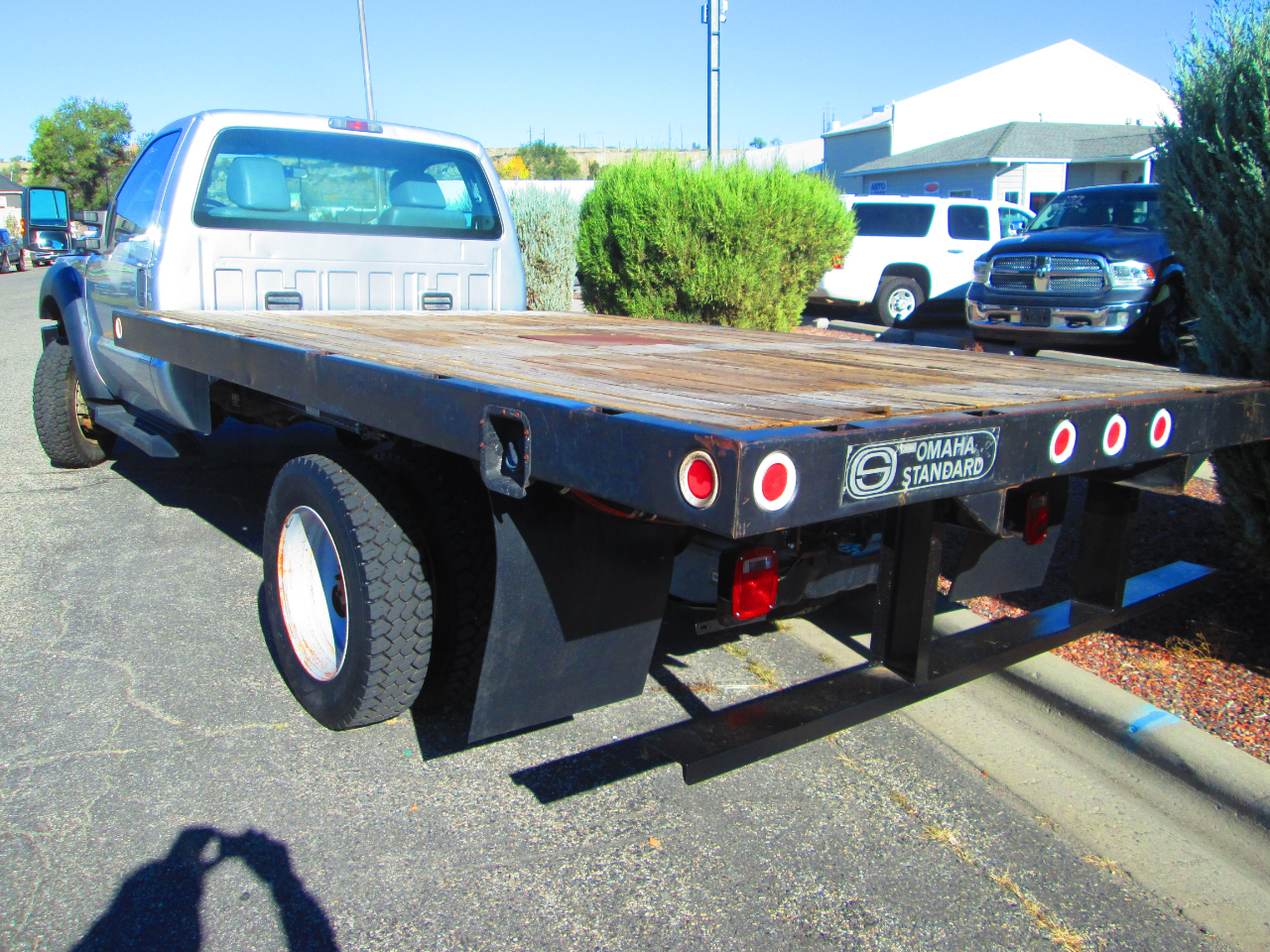LOW MILE FORD F-450, REGULAR CAB, 4X4, 6.8L V-10 GAS, AUTOMATIC, 4-88 AXLE RATIO, 12 FT FLAT BED WITH GOOSENECK HITCH,